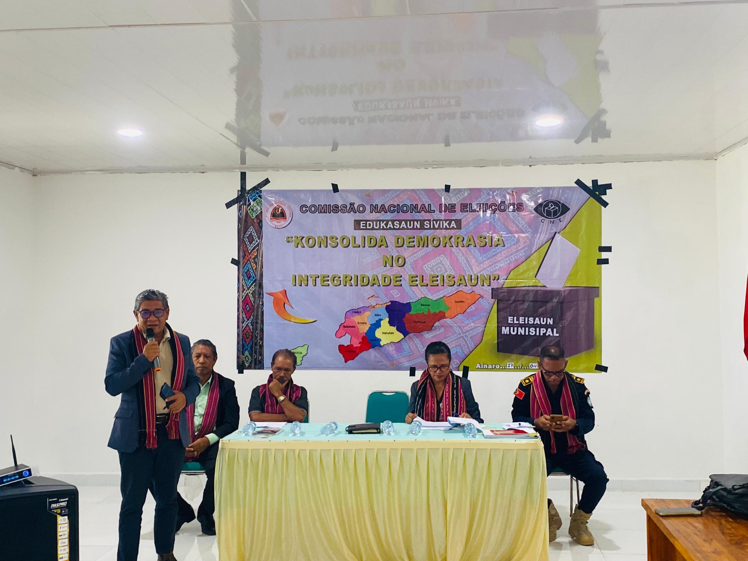 Lian-Orluli-17/04/2026- Komisaun Nasional Eleisoes (CNE) Hala’o Edukasaun sivika konsolida Demokrasia no eleisaun integridade iha Ainaro, kona-ba faze sira husi prosesu ne’ebé hala’o ona, nune’e mós atu finaliza preparasaun ba ajenda importante nian, aseitasaun ba podér administrativu lokál ne’ebé sei desentraliza.