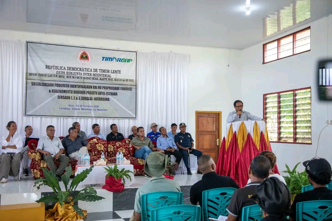 Lian Orluli – 26 Fevereiru 2026 Hato-Udu –TIMOR GAP, hala’o divulgasaun progresu identifikasaun ba auto estrda iha Hato-Udu hodi ko’alia kona-ba progresu projetu Auto-estrada Zumalai ba Natarbora.